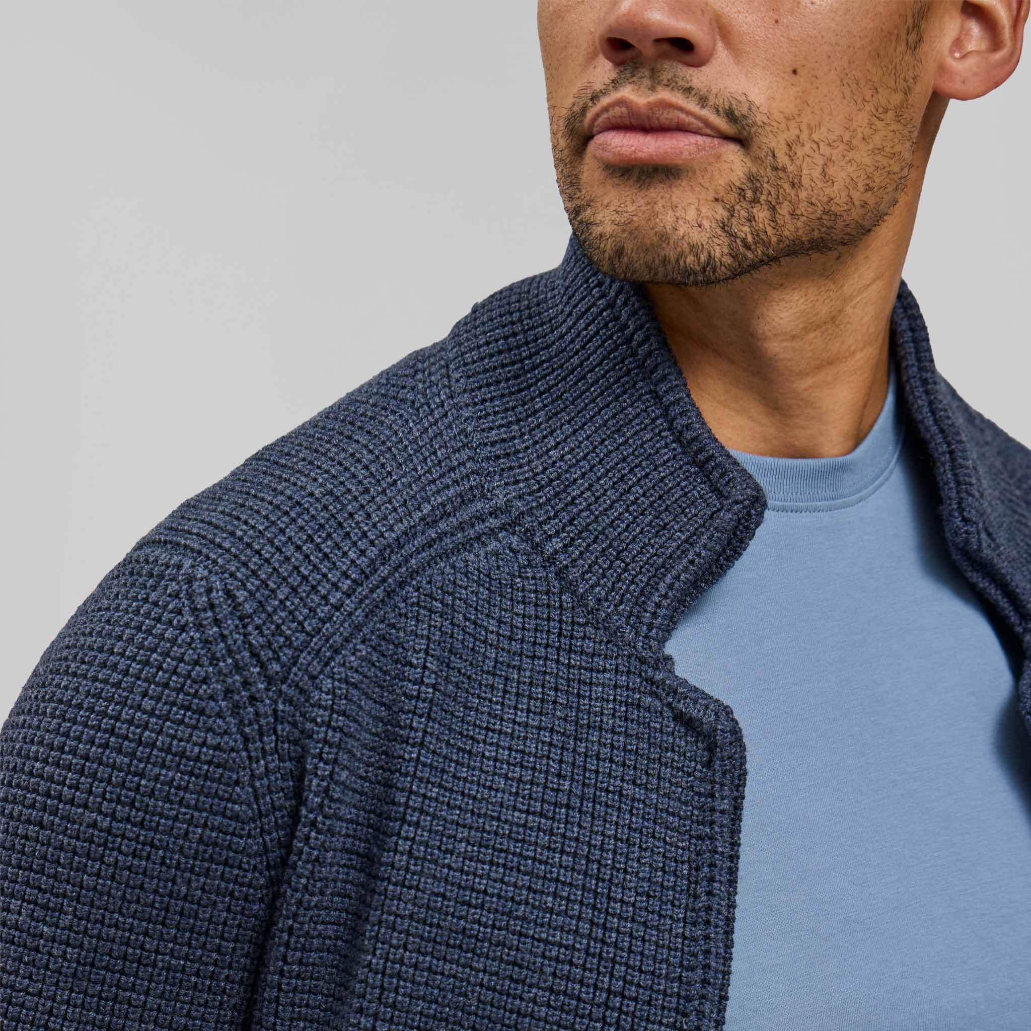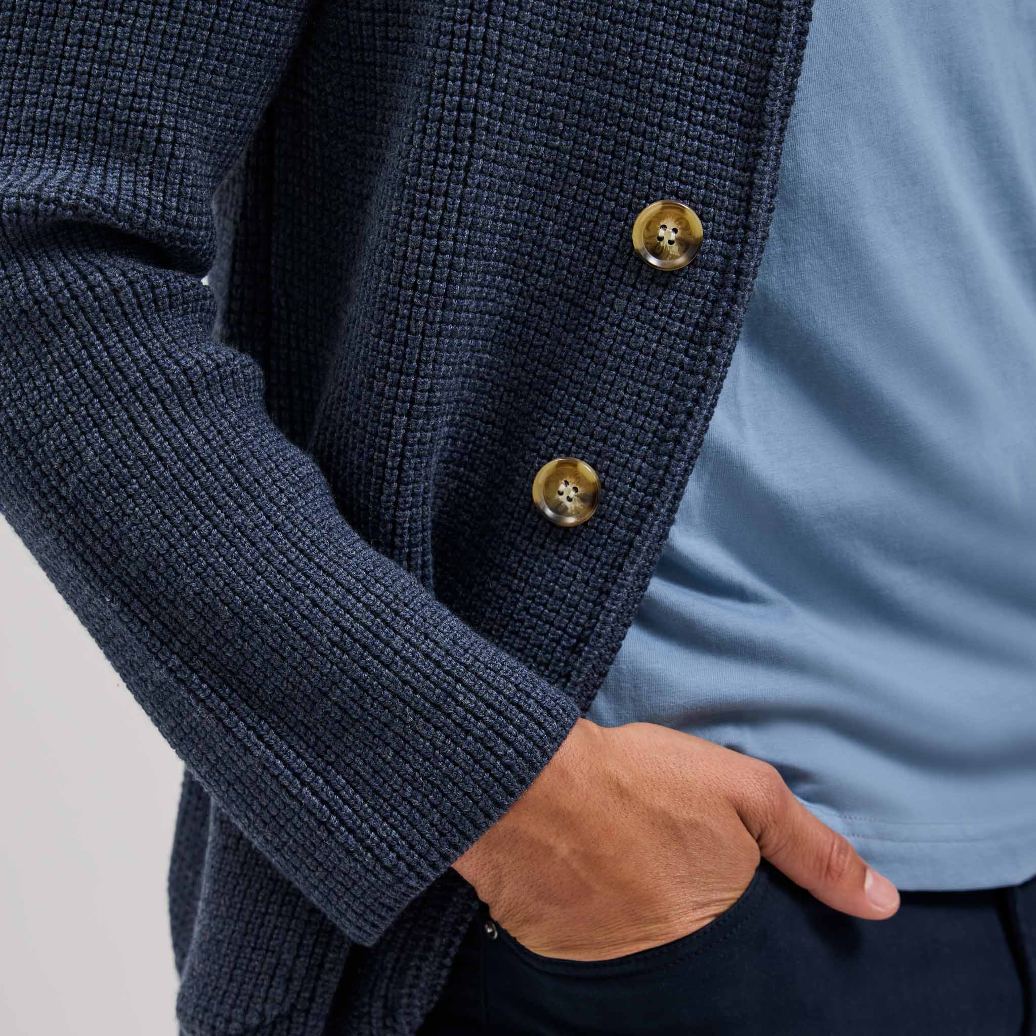 The Joshua Cardigan is a heavyweight layer knit from 100% merino wool for warmth and substance. Its low-gauge texture, stand-up collar, and patch pockets give it a relaxed yet refined look. Built to keep you comfortable in cooler weather, it’s a timeless piece that balances function with sophistication.