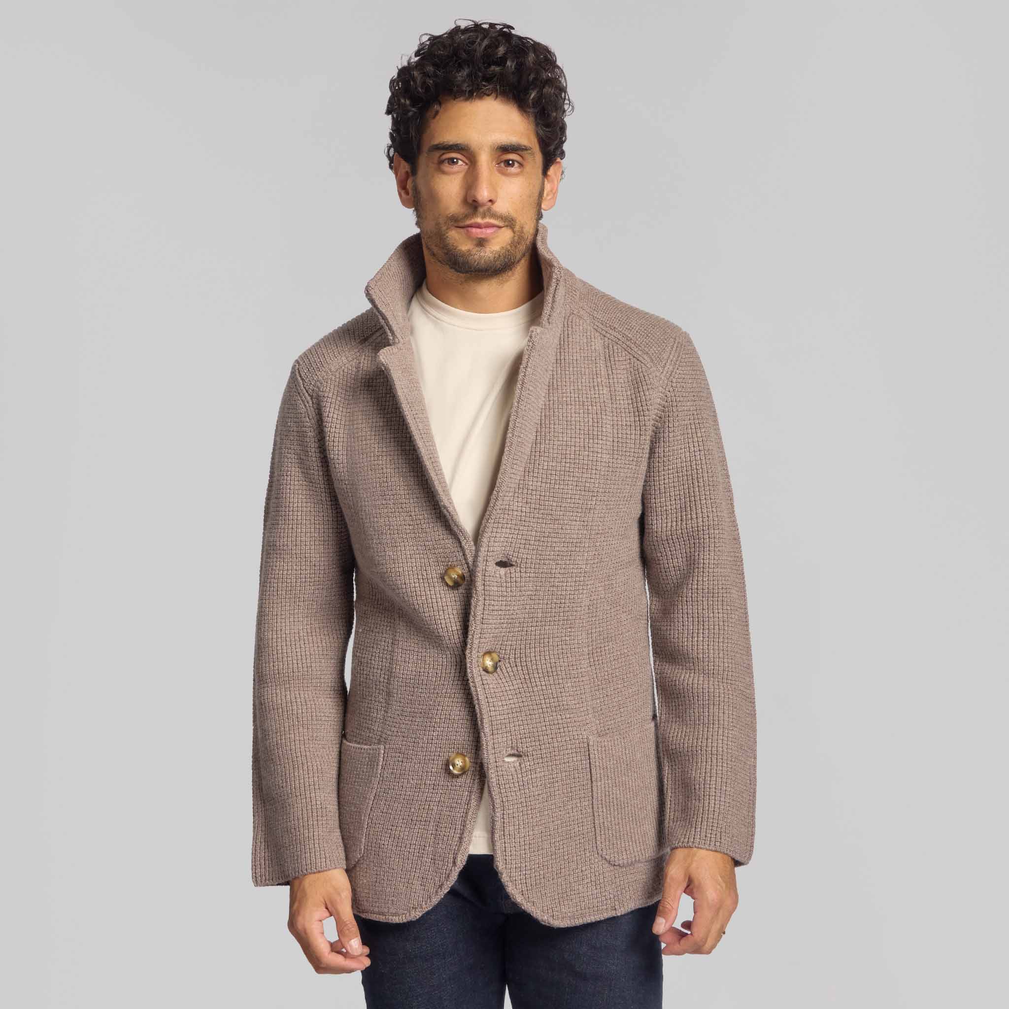 The Joshua Cardigan is a heavyweight layer knit from 100% merino wool for warmth and substance. Its low-gauge texture, stand-up collar, and patch pockets give it a relaxed yet refined look. Built to keep you comfortable in cooler weather, it’s a timeless piece that balances function with sophistication.