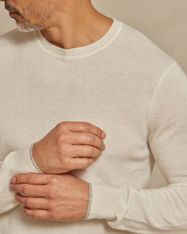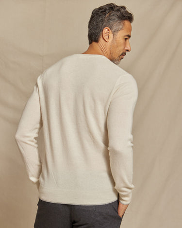 The Walker - Cashmere Crew Neck Sweater w/Tipping - Ivory / Grey