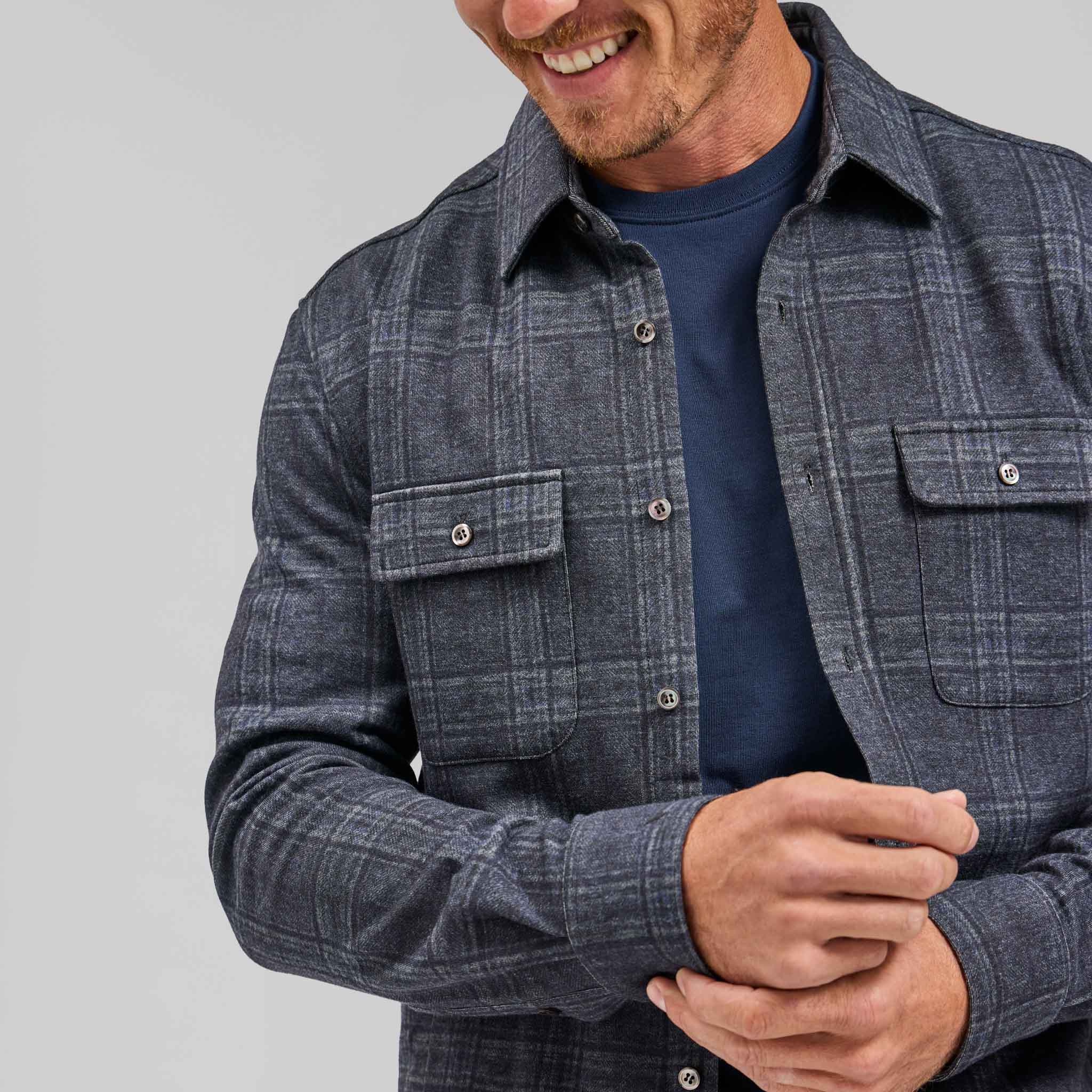 The Peter Check Shirt Jacket is a versatile layer designed with a tailored check pattern and built-in stretch for ease of movement. Crafted from a cotton-blend fabric and finished with smoke mother-of-pearl buttons, it combines everyday utility with a refined finish.