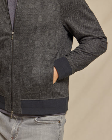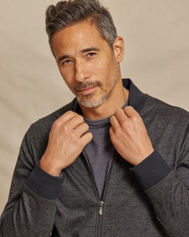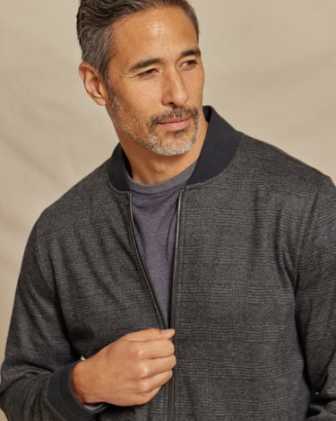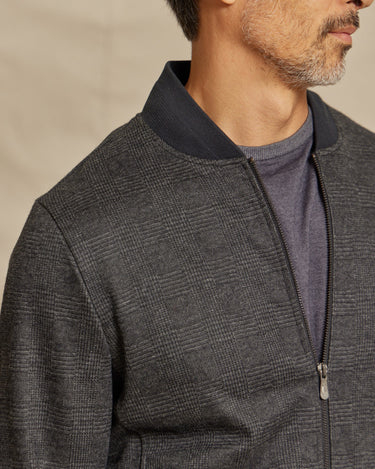 The Eden - Brushed Knit Check Bomber Jacket - Charcoal Heather