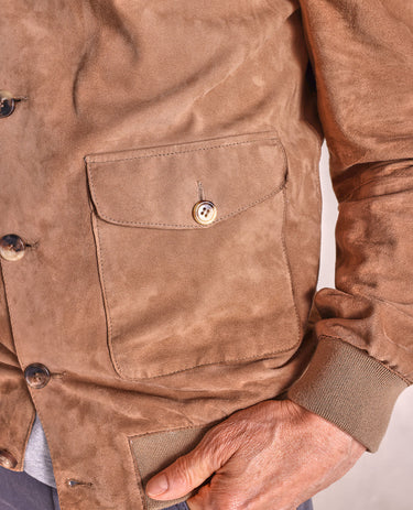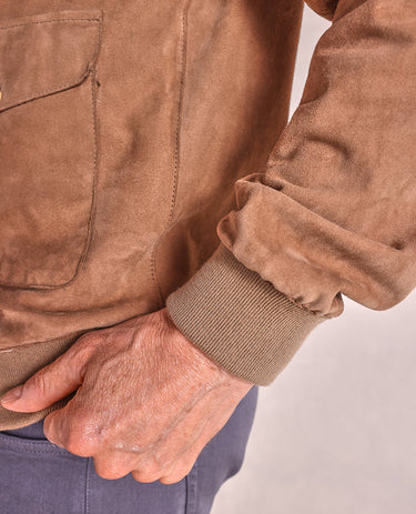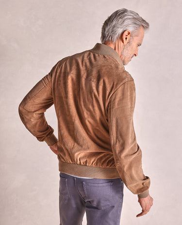 Oliver - Suede Baracuta Jacket w/Knit Trim - Brown
