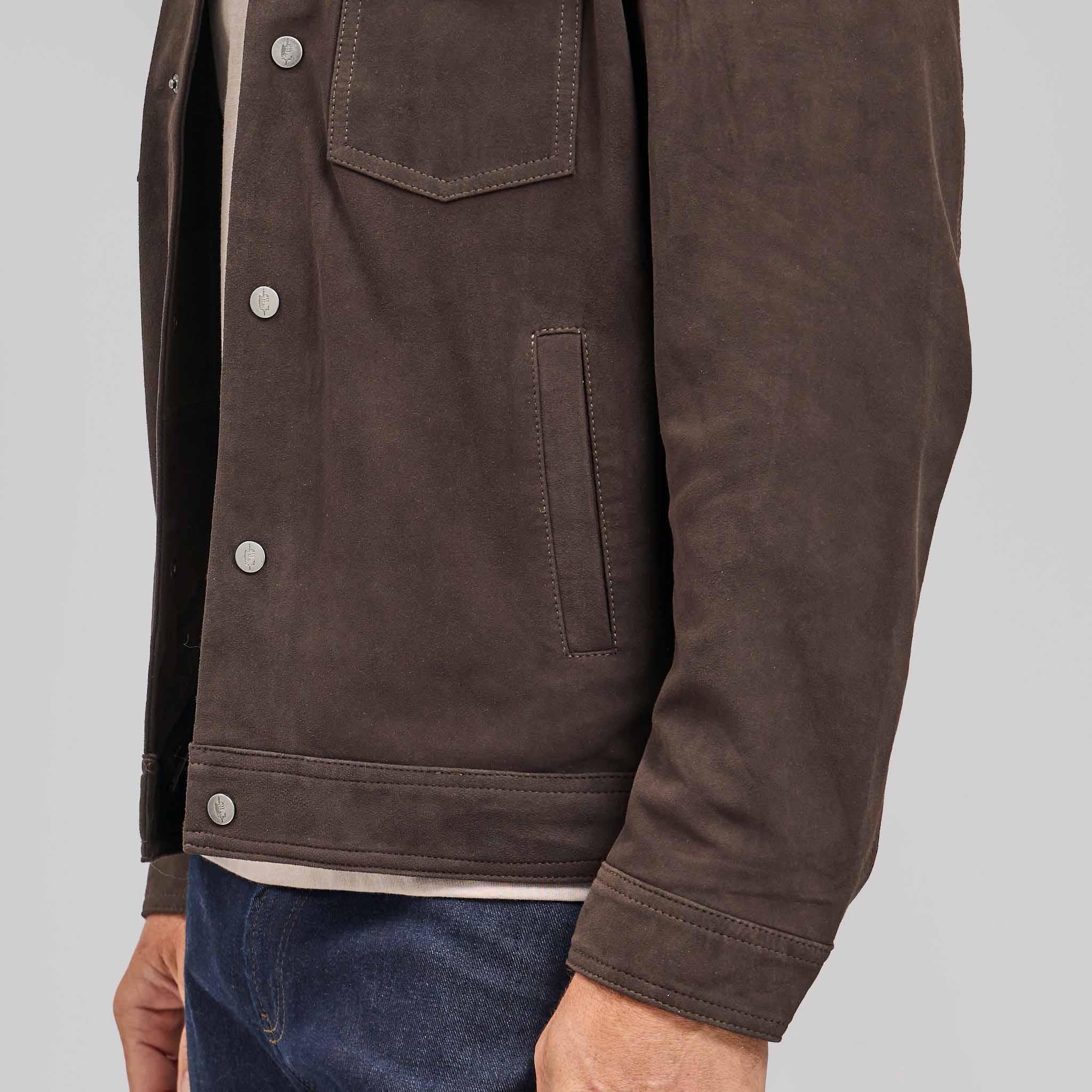 The Strauss - Suede Trucker Jacket - Chocolate Brown
