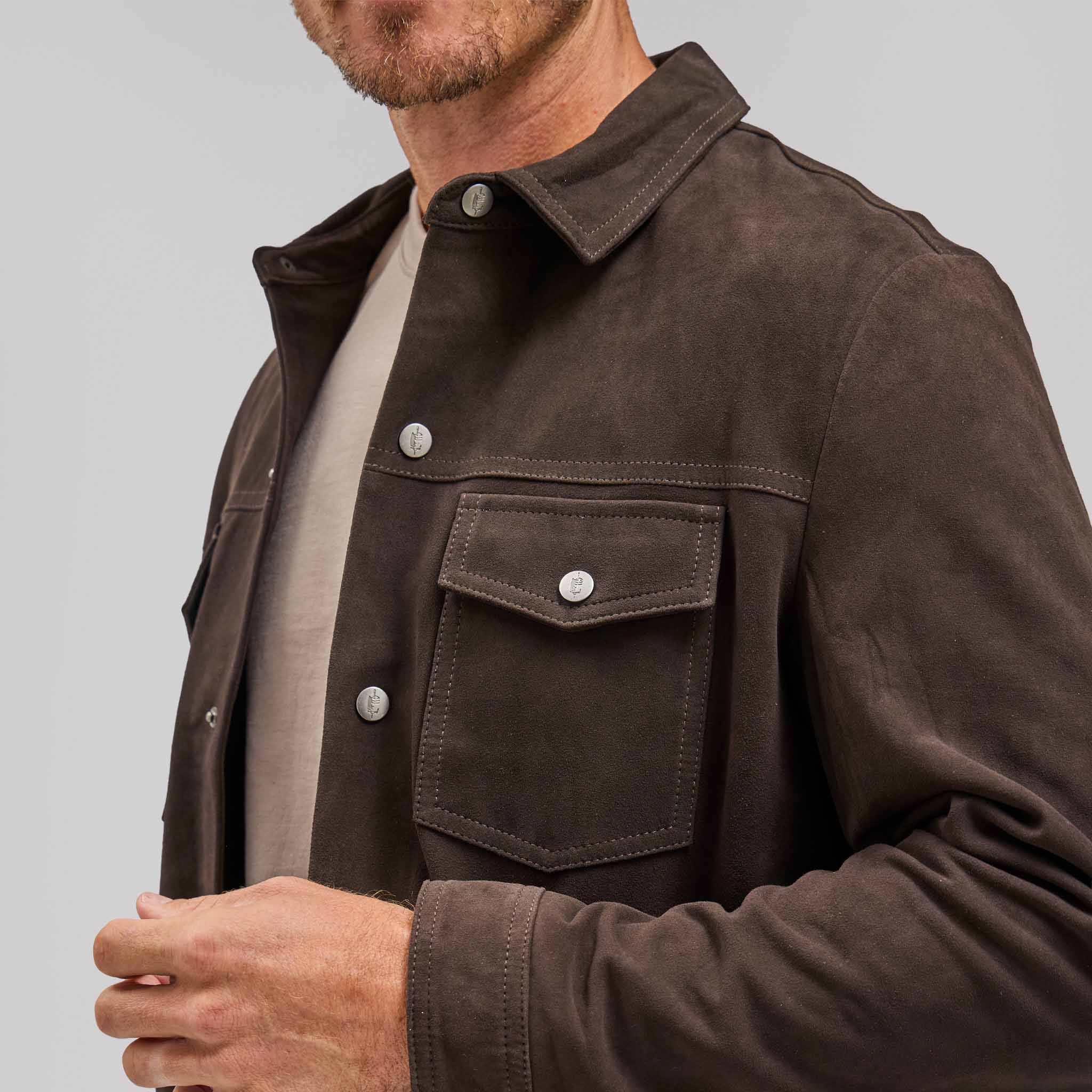 The Strauss Trucker is crafted from 100% lamb suede in a lightweight construction that feels easy from the start. A half-lined interior and side-entry pockets keep it functional without losing its sharp, timeless look. This is a suede jacket that is intentionally crafted to bring refinement to everyday wear.