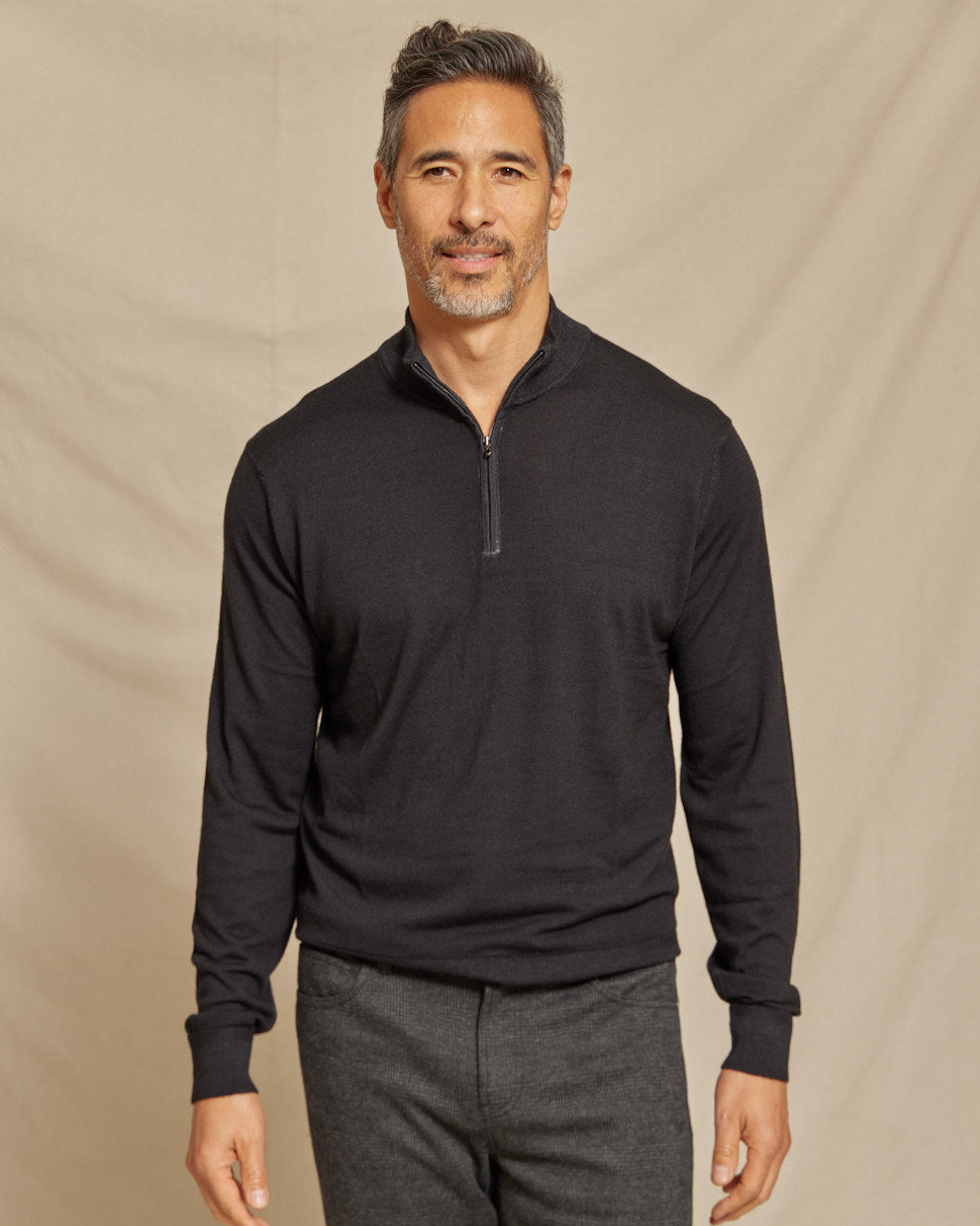 The Archer - LS Lightweight MERINOmax 1/4 Zip Sweater - Black