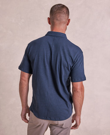 A tailored fit, not too tight, not too loose. Built with textured slub cotton that's garment washed and enzyme rinsed to create that perfect lived-in look. A modern spread collar and metal burnished buttons only add to that timeworn appeal - whilst keeping this short sleeve polo sophisticated enough to dress up or down.