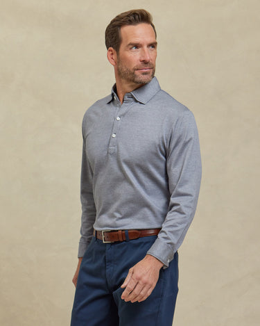 The Oliver - 3BTN Knit Pique LS Polo - Navy