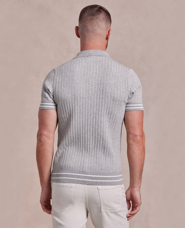 The Tristan - Cashmere Cable Knit SS Polo - Grey/Ecru