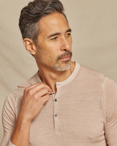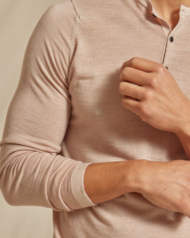 The Maxwell - LS Lightweight MERINOmax Henley Sweater - Light Taupe