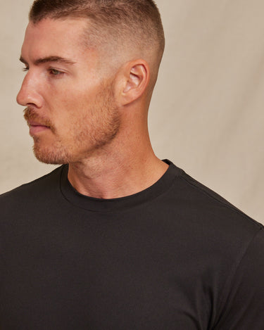 The Voyager - Performance Short Sleeve T-Shirt is crafted from our Neoknit proprietary technological fabric, renowned for its shape retention, rapid moisture-wicking capabilities, four-way stretch, breathability, and wrinkle resistance. The shirt features a curved rear hem and a discrete R51 block logo at the right bottom hem.