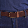 The most comfortable belt you'll ever wear, our Voyager belt is crafted in a visually striking woven pattern that adds the perfect finishing touch to any look. Adjusts to size with a rounded metal buckle with a contrast suede tip.