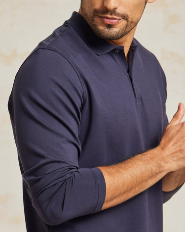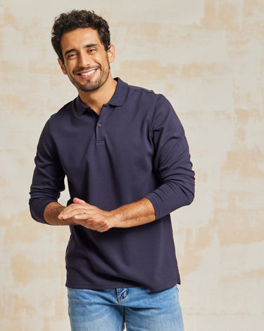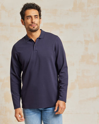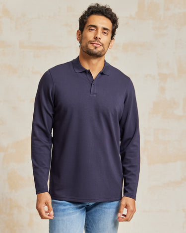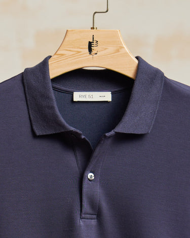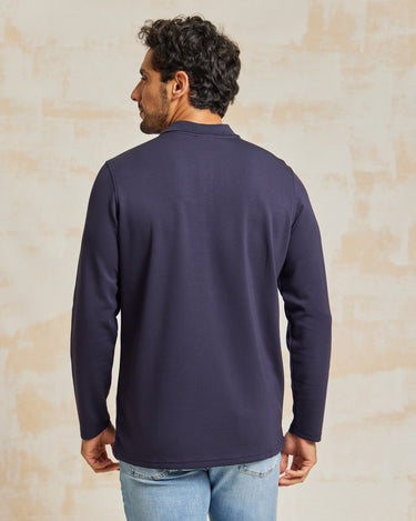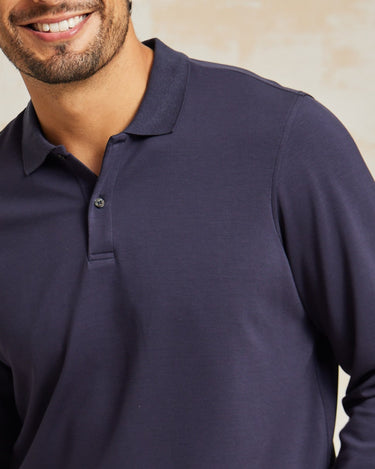 The Holden - Stone Washed Double Knit LS Polo - Navy