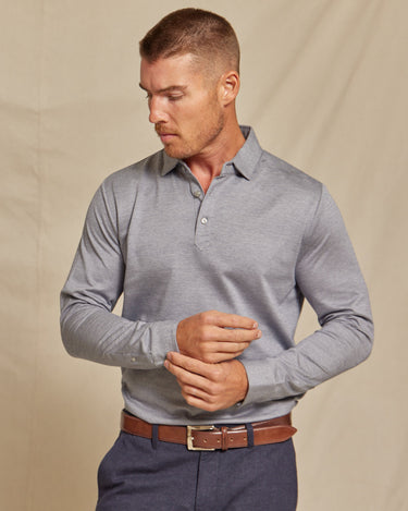 The Oliver - 3BTN Knit Pique LS Polo - Grey