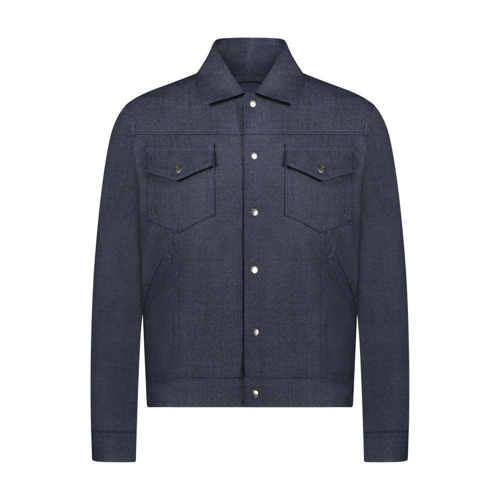 The best part of custom clothing is experimenting with fabrics and styles that you don't usually see utilized together. The prince of whales wool suiting fabric rendered in a denim jacket style is the chicest thing ever. relaxed yet elegant, refined yet a bit rumpled. Perfect with a sweater or tee and favorite pair of jeans.
