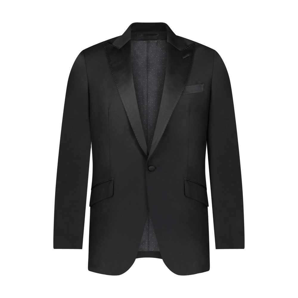 It's your big day; now what? Fit and Fabric are everything, custom is truly the only way to get there. This look is formulated with an iconic black wool fabrication, crafted just for this occasion. Set with luxurious satin trim and a classic pleated bib front formal shirt creating a dashing silhouette during and after the I DO's.