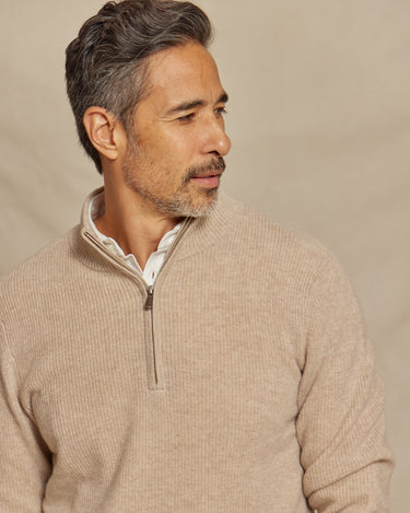 The Kayce - Cashmere 1/4 Zip Sweater - Oatmeal Heather