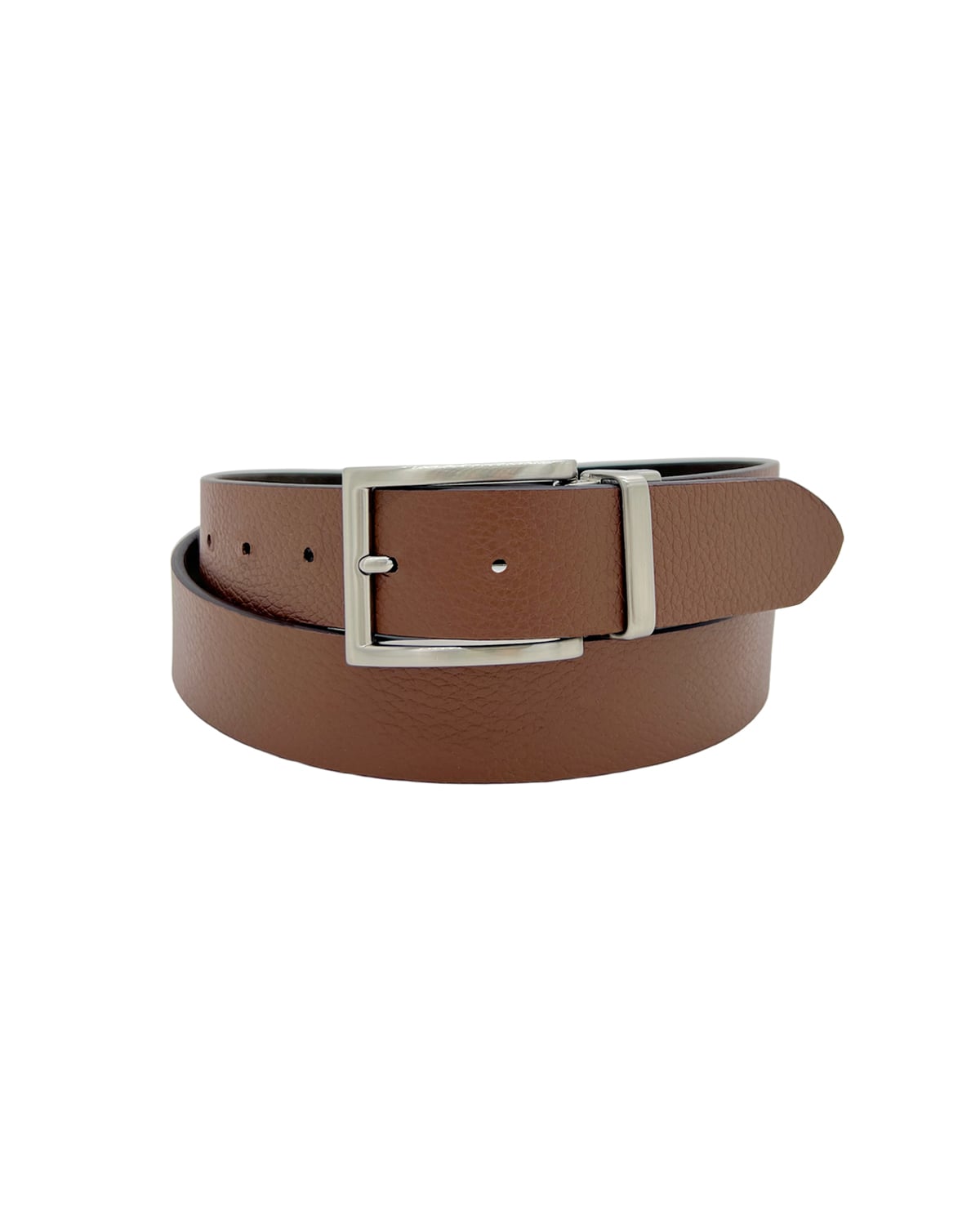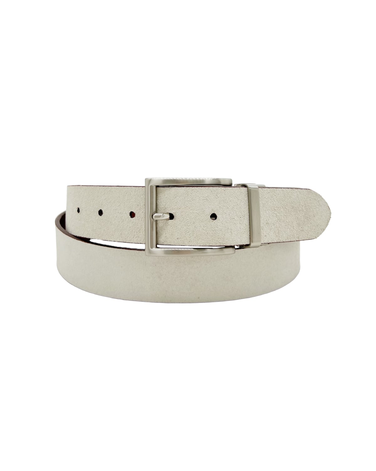 This reversible belt features smooth, velvety Italian suede on one side and structured pebble-textured calfskin on the other—giving you two elevated options in one versatile piece.