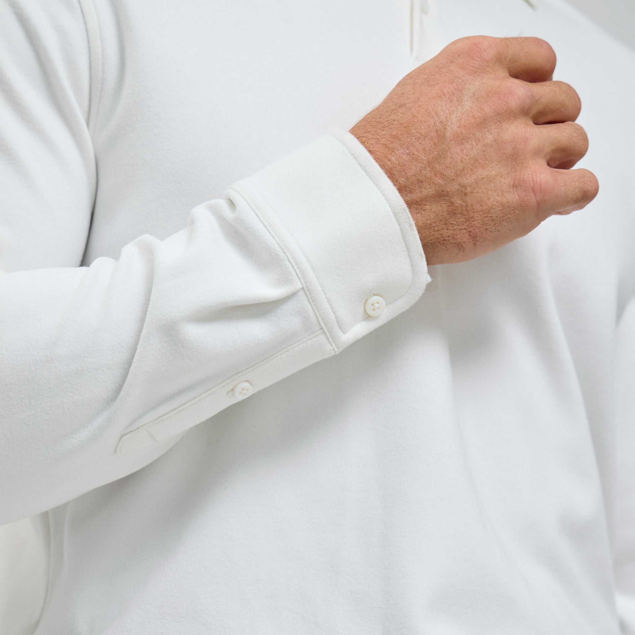 The Braden Tech Wool Sleeve Polo is a modern take on a classic silhouette. Crafted in a medium-weight knit, it features tailored shirt cuffs for a refined finish. Designed to balance structure and ease, this polo transitions effortlessly from workdays to evenings.