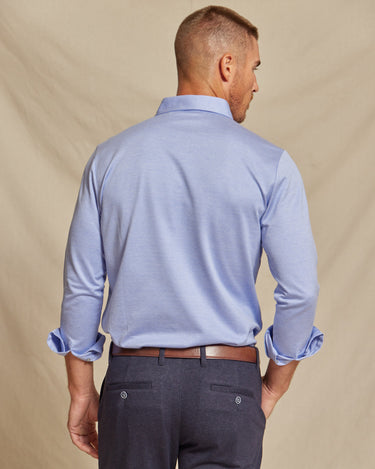The Oliver - 3BTN Knit Pique LS Polo - Blue