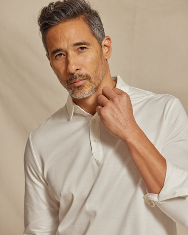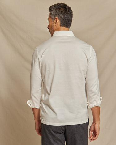 The Oliver - 3BTN Knit Pique LS Polo - White