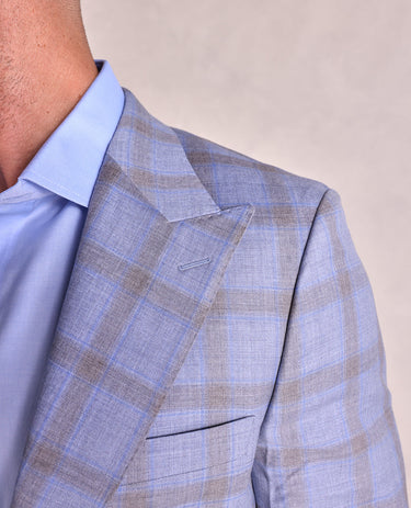 Woven in Italy by the world-renowned Scabal, this soft jacket has a smart 2-btn stance that will elevate your casual look with ease. Hand-crafted with a peak lapel, welt chest pocket and flap pockets, finished with horn buttons, interior pockets and double vented back.