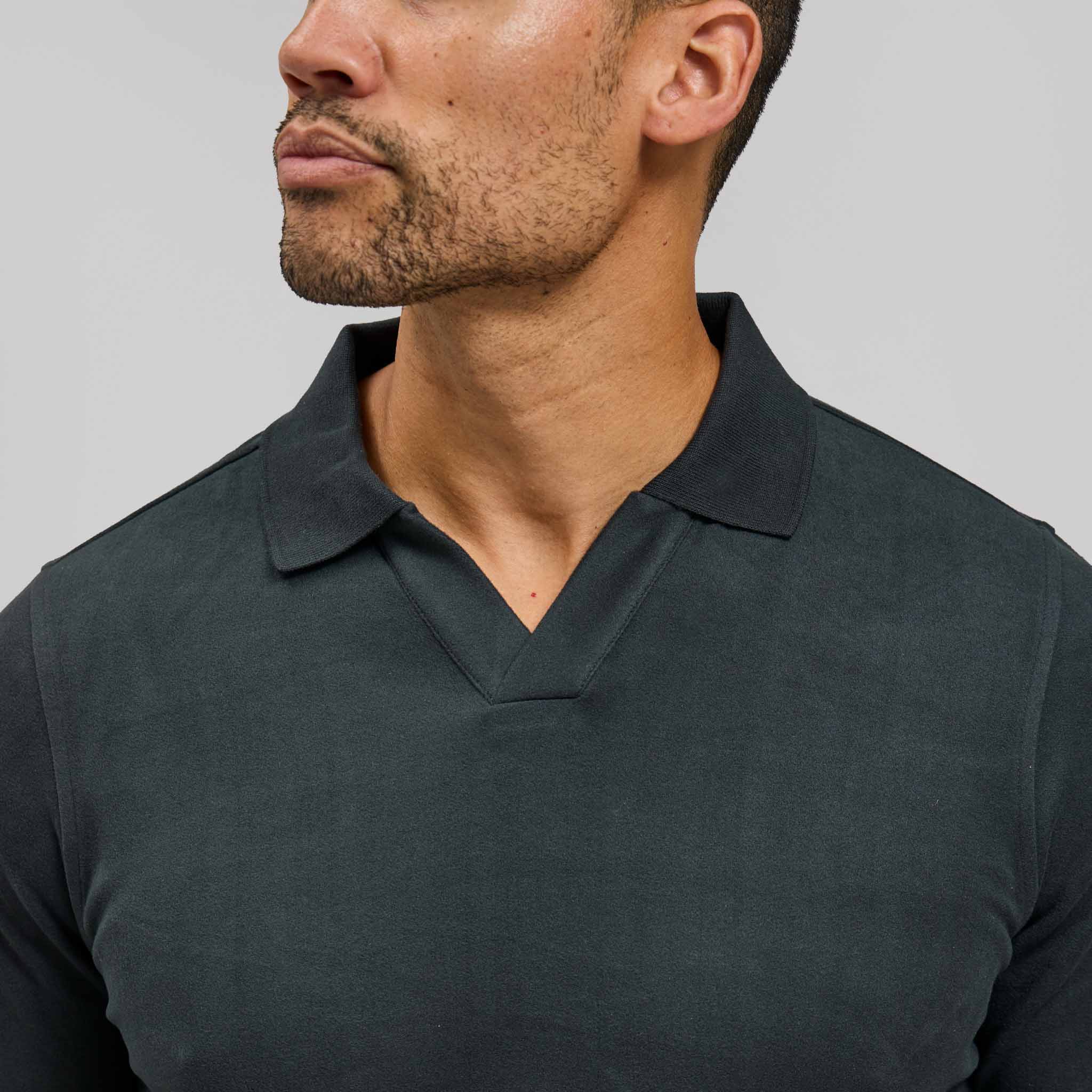 The Hugo Tech Wool Johnny Collar is a modern staple with a substantial, heavyweight feel. Designed with innovative 4-way stretch, it delivers structure, comfort, and ease of movement in one refined knit. A versatile piece that transitions seamlessly from casual to polished settings.
