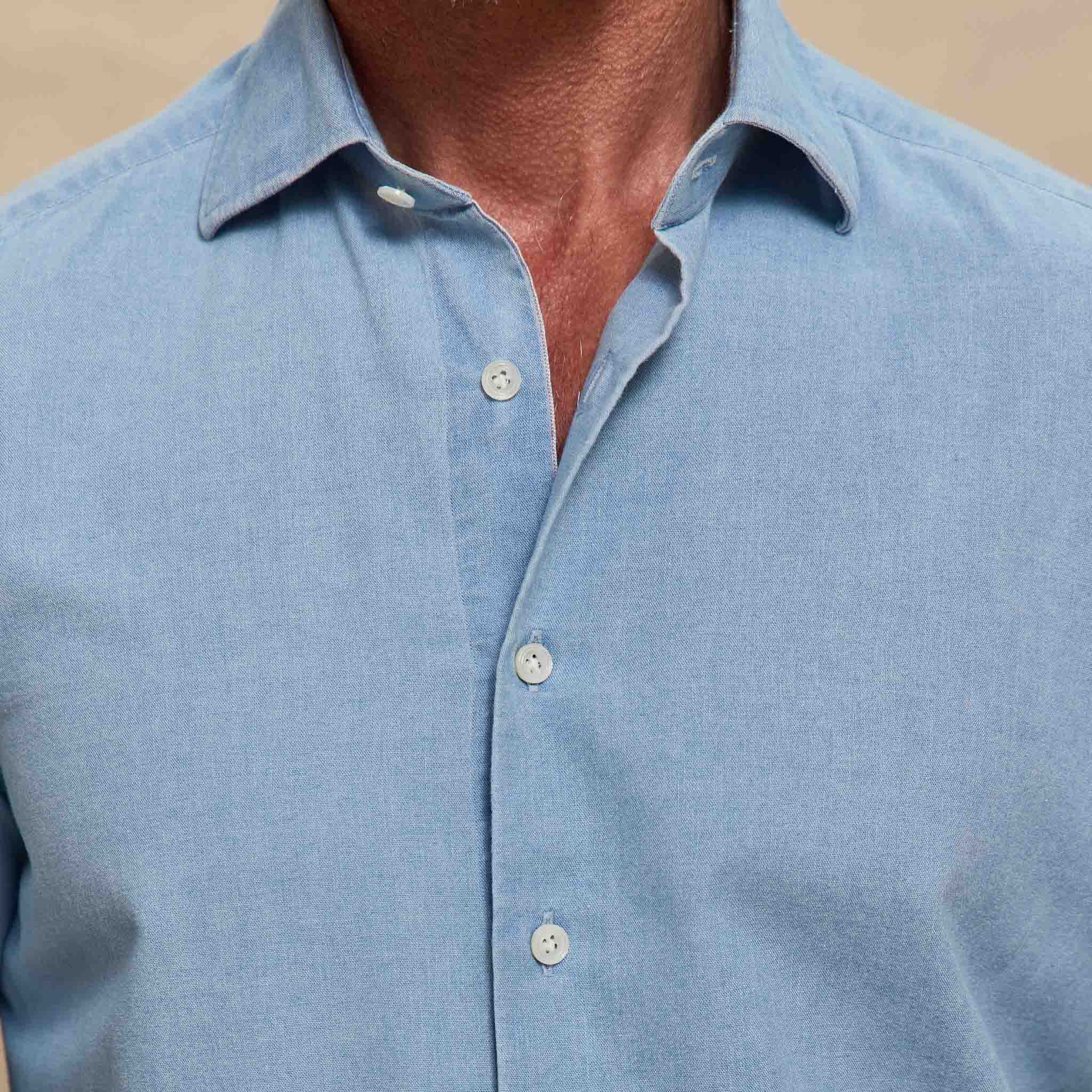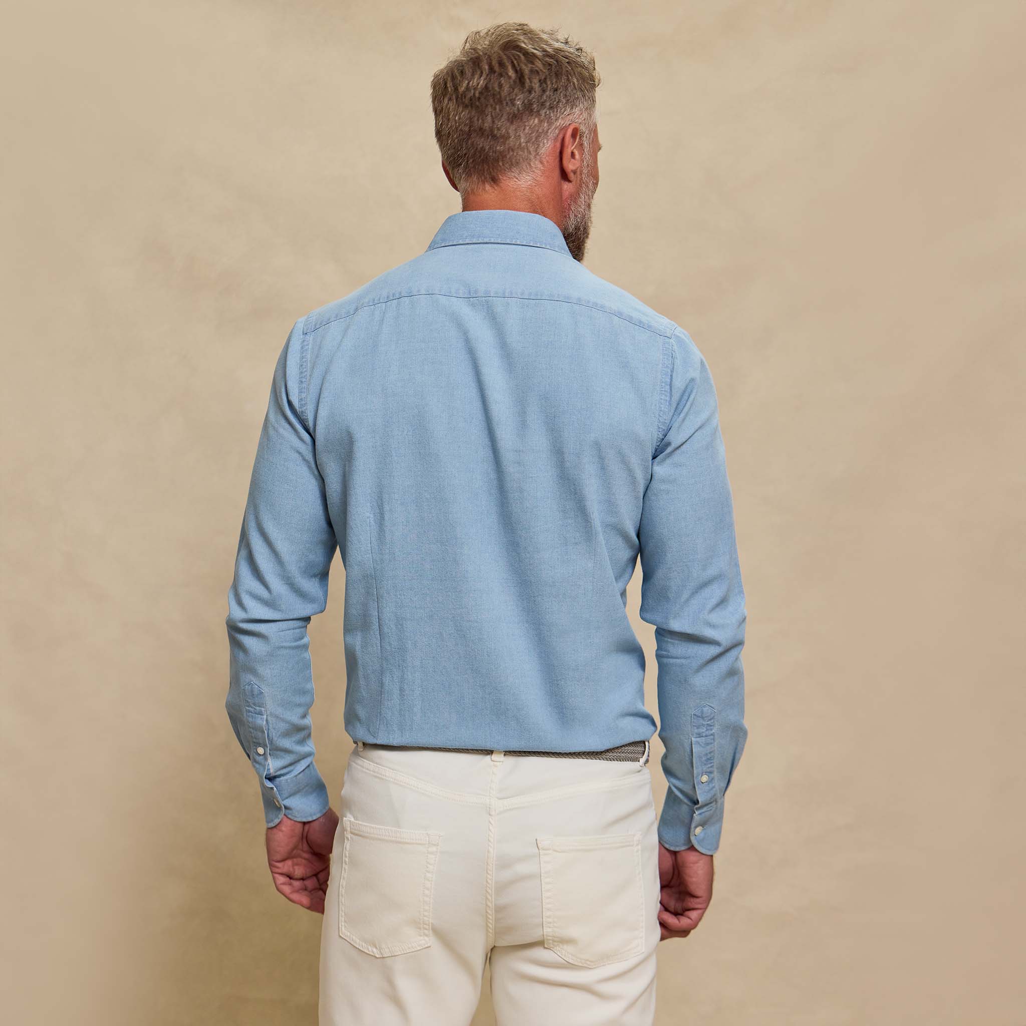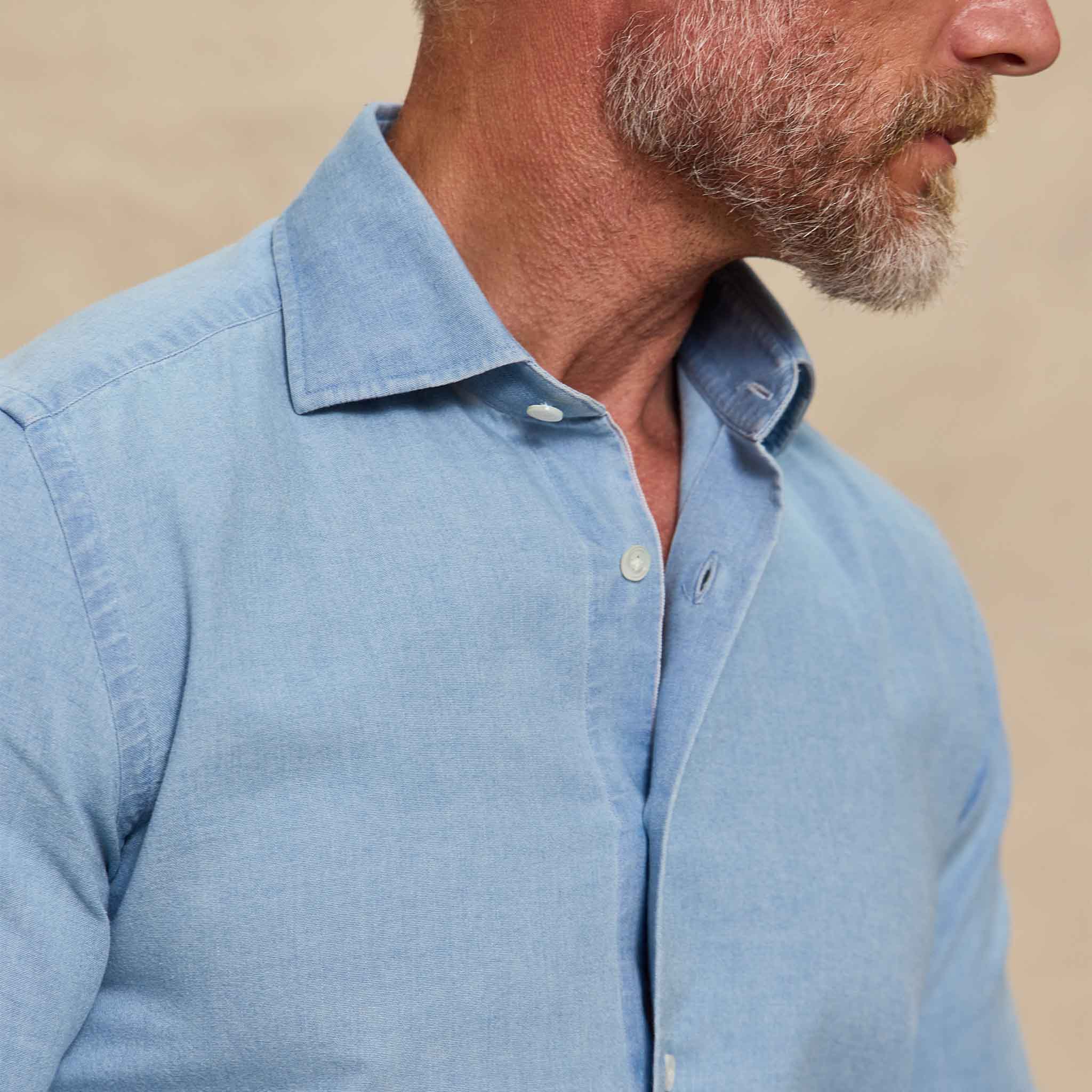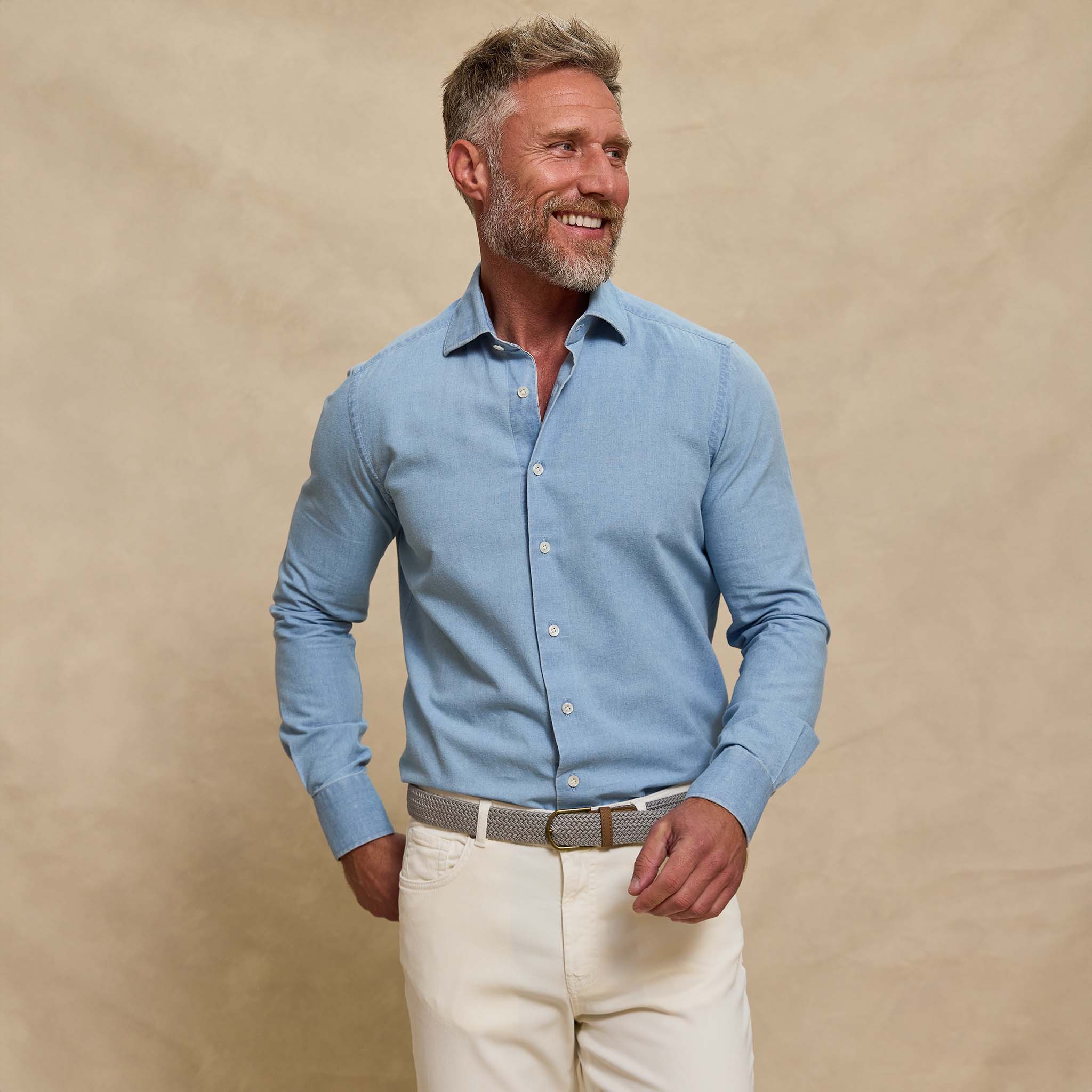 Woven from the finest Japanese cotton, this luxury dress shirt offers a remarkably smooth hand feel that only gets softer and more refined with every wear. Its expert tailoring and subtle luster make it a timeless staple that evolves beautifully over time.