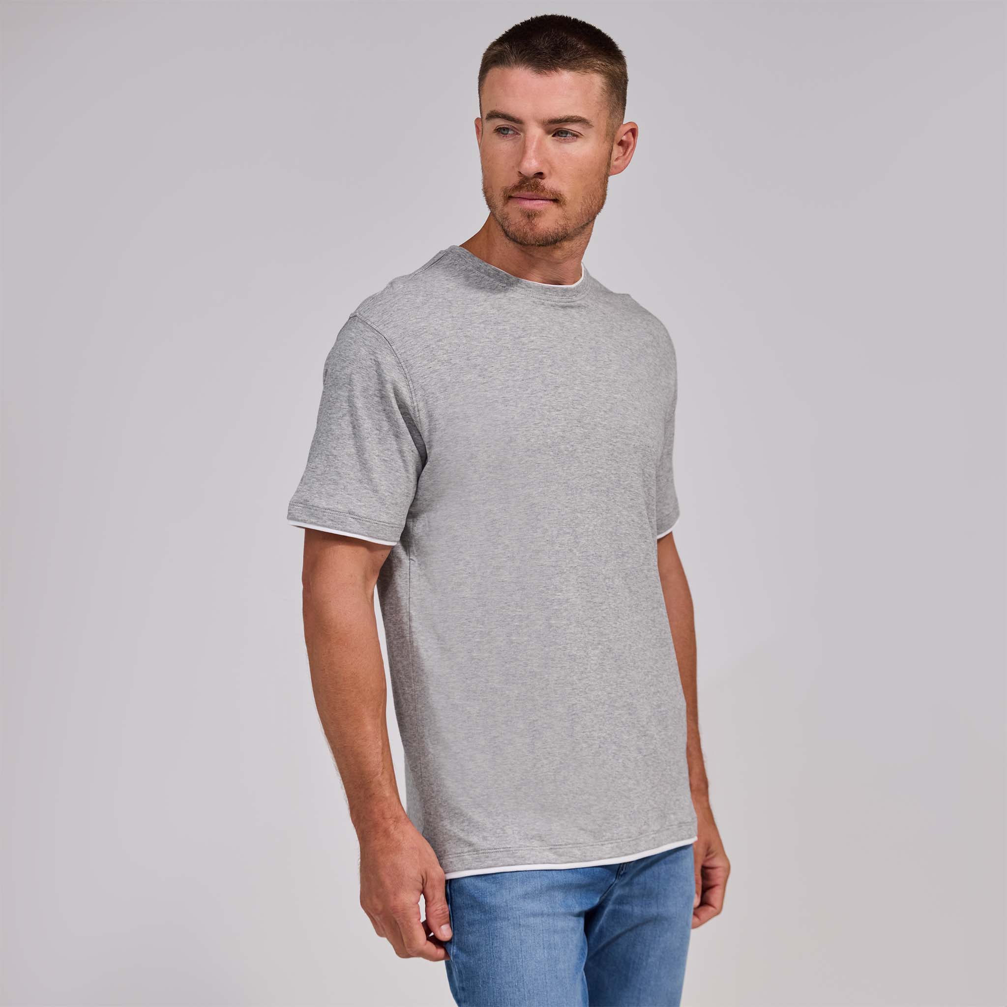 The Luxe Supima - Heather Double Trim Tee - Grey/White