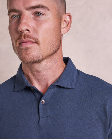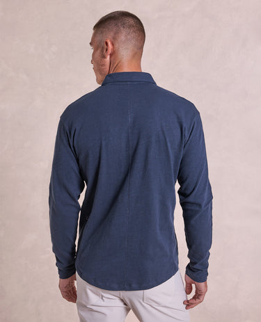 The Mercer - Distressed LS Polo - Navy