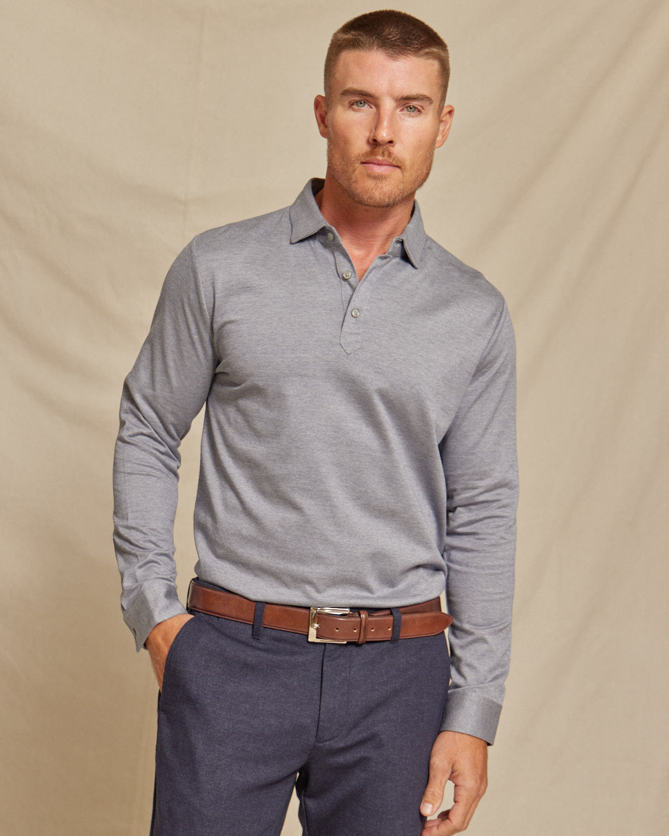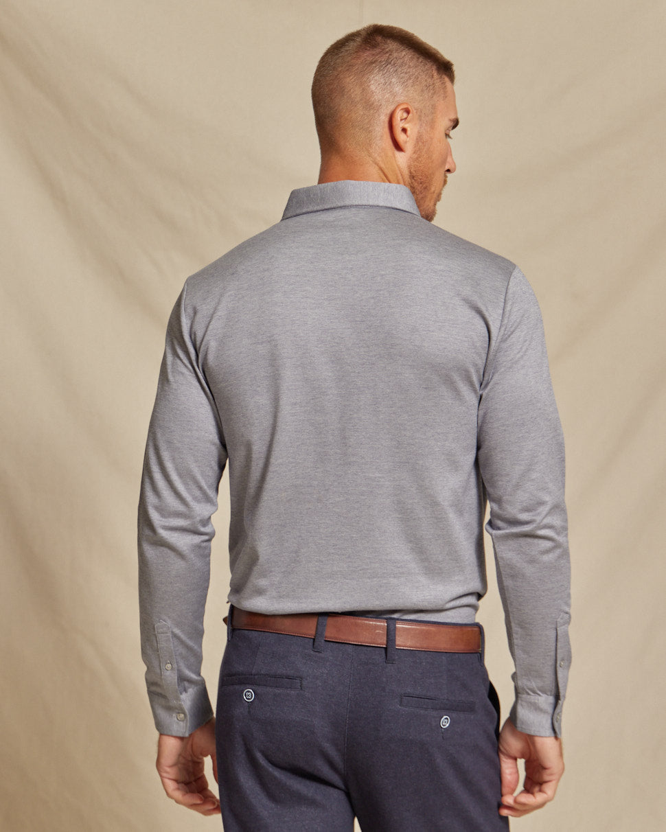 The Oliver - 3BTN Knit Pique LS Polo - Grey