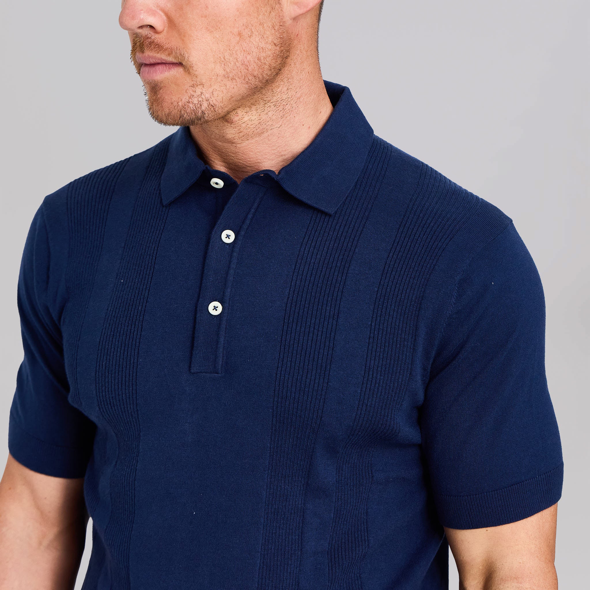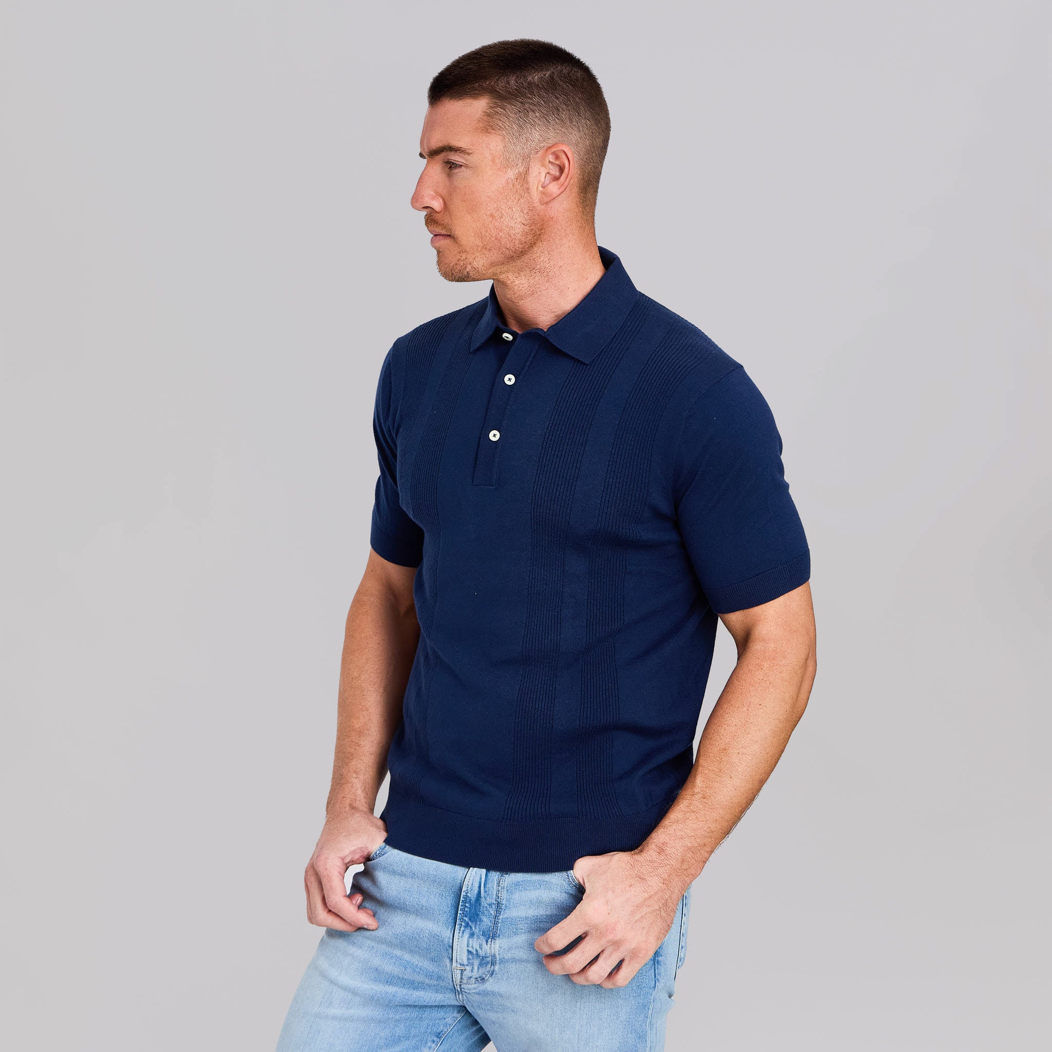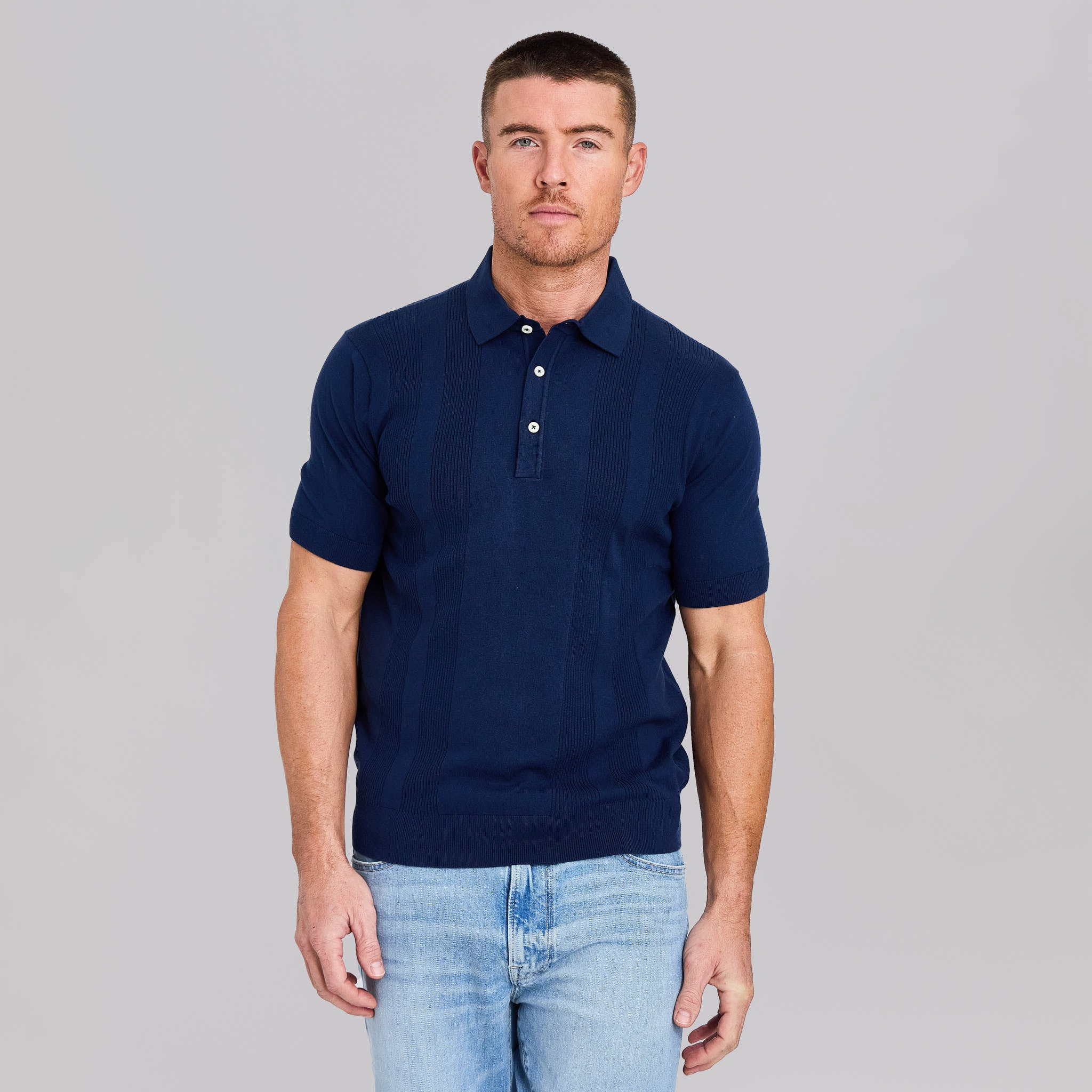 The Sergio - Striped Wool Polo - Navy