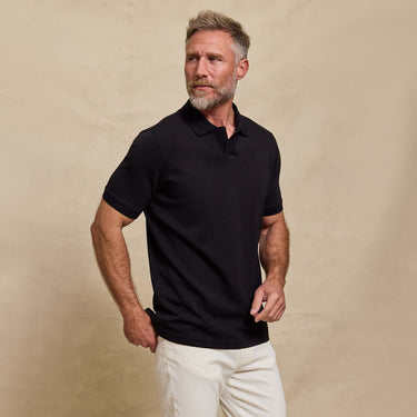 The Yates - Sand Washed Double Knit SS Polo - Black