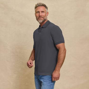 The Yates - Sand Washed Double Knit SS Polo - Charcoal