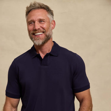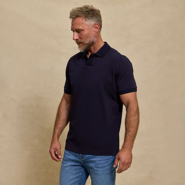 The Yates - Sand Washed Double Knit SS Polo - Navy